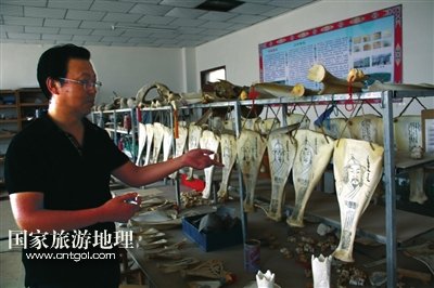 抱著十分好奇的心態(tài),記者決定前去探訪。在鄂托克前旗宣傳部一位工作人員的指引下,記者來到了鄂托克前旗民族職業(yè)高中的教學樓辦公室,見到了哈斯達來老師。因為整個辦公室內(nèi)有許多骨雕、沙雕等許多藝術(shù)作品,所以看上去有些凌亂。