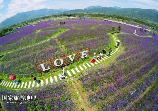 國家旅游地理 浙江溫州6月16日訊 6月16日,在浙江省溫州市平陽縣山門現(xiàn)代農(nóng)業(yè)園,游客徜徉在馬鞭草花海里?;ê@镓Q立的一個“LOVE”造型格外醒目。新華社發(fā)(蘇巧將 攝)